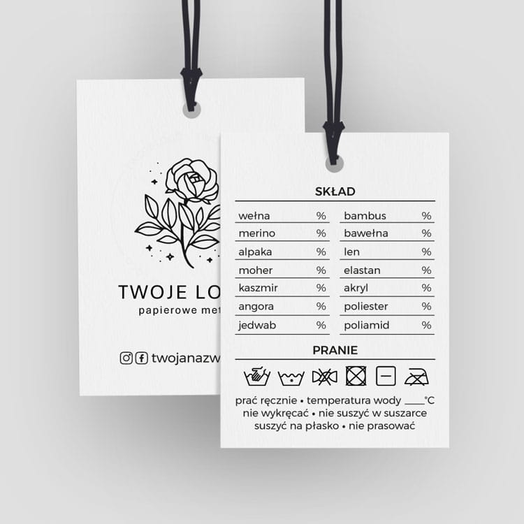 Papierowe metki z logo i składem wełny