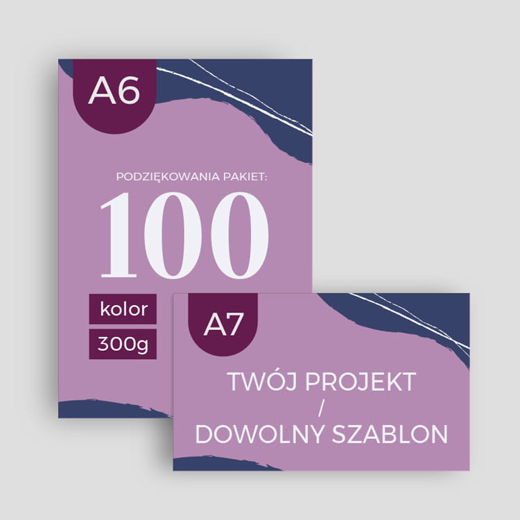 Podziękowanie za zakup w formacie A7 - 105x74mm lub A6 105x148mm w orientacji poziomej lub pionowej - pakiet 100 szt.